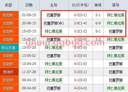 1、巴塞罗那VS拜仁慕尼黑 巴塞罗那与拜仁慕尼黑交手6场,1胜2平3负,进9球失8球。巴塞罗那与德国球队交手51场,18胜12平11负,进91球失50球,拜仁慕尼黑与西班牙球队交手43场,20胜12平11负,进67球失55球。
